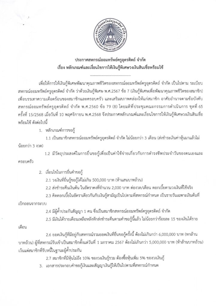 หลักเกณฑ์และเงื่อนไขการให้เงินกู้พิเศษวงเงินสินเชื่อพร้อมใช้