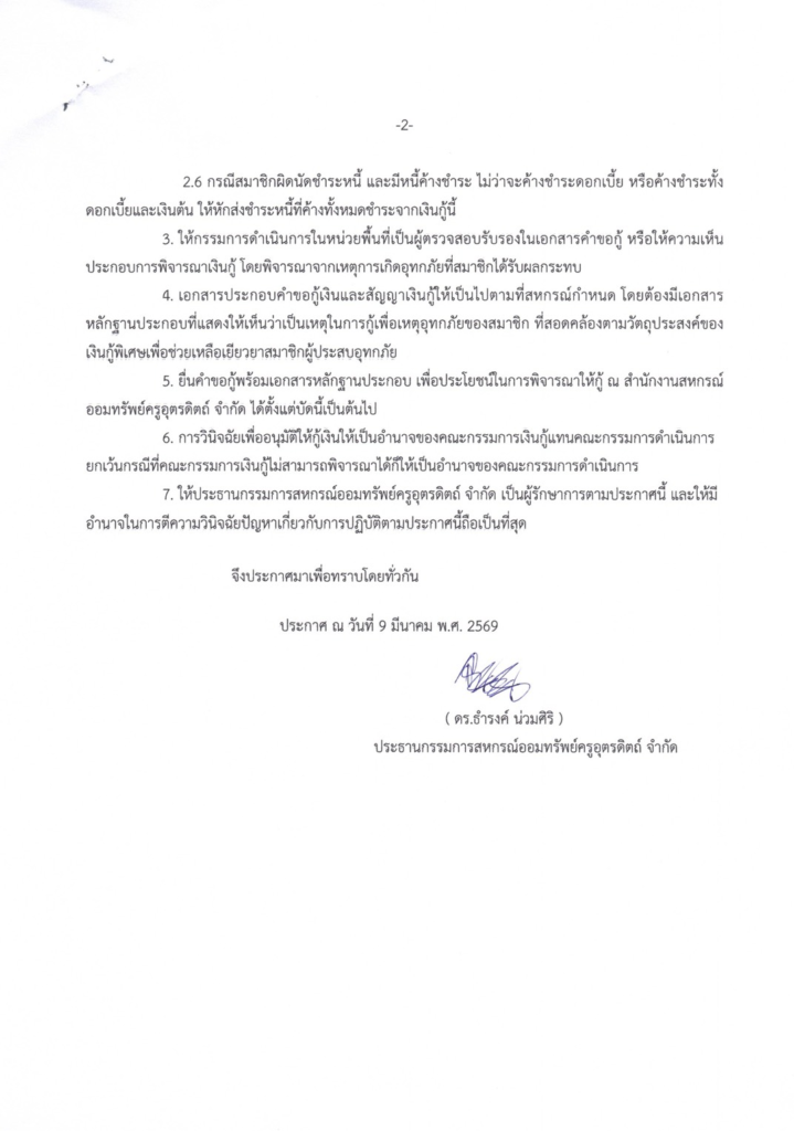 (2). ในฐานะกรรมการ ชุมนุมสหกรณ์ออมทรัพย์แห่งประเทศไทย ได้รับเงินสวัสดิการมา 20 ล้าน ดอกเบี้ยพิเศษ 1 ปี จึงขออนุมัติกรรมการดำเนินการ“ช่วยเหลือสมาชิกผู้ประสบอุทกภัย ” ท่านละ 30,000 บาท ดอกเบี้ย 3% ชำระคืน 12 เดือน ไม่มีผู้ค้ำประกัน น่าจะได้รับเงินก่อนสิ้นเดือนนี้ครับ กรรมการในพื้นที่จะพิจารณาเบื้องต้นก่อนกรรมการเงินกู้พิจารณาตัดสิน ♦️รอให้ฝ่ายจัดการทำแบบคำขอและสัญญาในระบบโปรแกรม เงินกู้ระยะสั้น เรียบร้อยแล้วค่อยมายื่นนะครับ